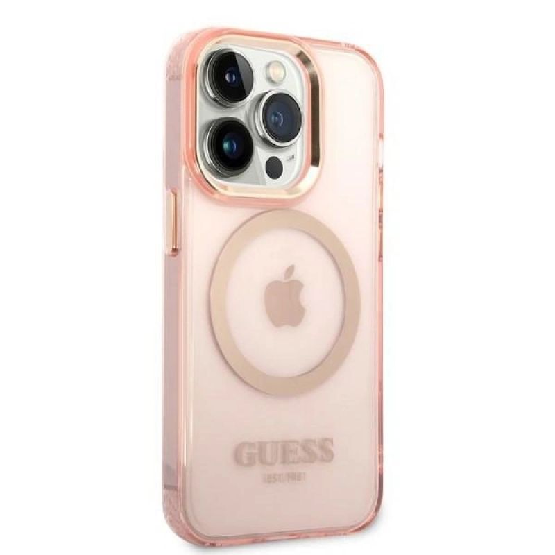 Guess GUHMP14LHTCMP iPhone 14 Pro 6,1" rosa/rosa Hartschale Gold Outline Translucent MagSafe