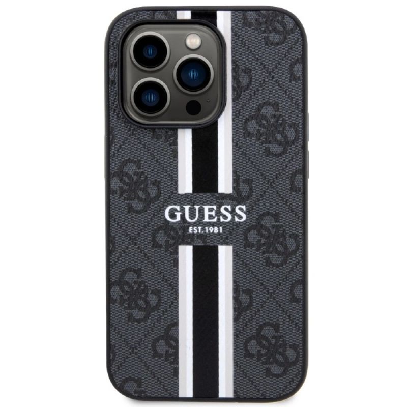 Guess GUHMP14LP4RPSK iPhone 14 Pro 6,1" schwarz/schwarzes Hardcase 4G bedruckte Streifen MagSafe