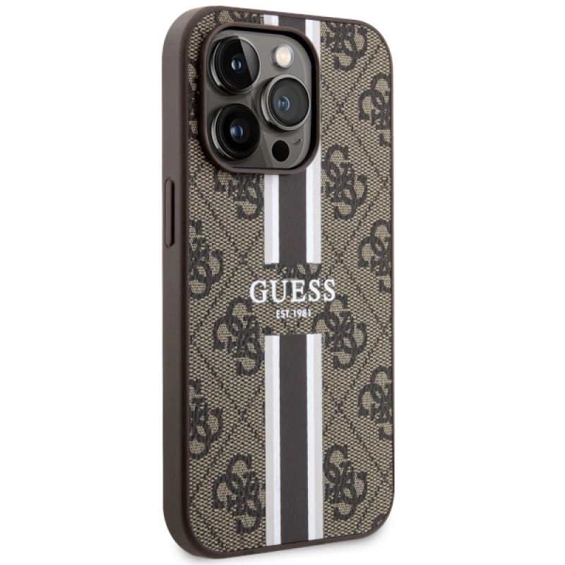 Guess GUHMP14LP4RPSW iPhone 14 Pro 6,1" braun/braunes Hardcase 4G bedruckte Streifen MagSafe
