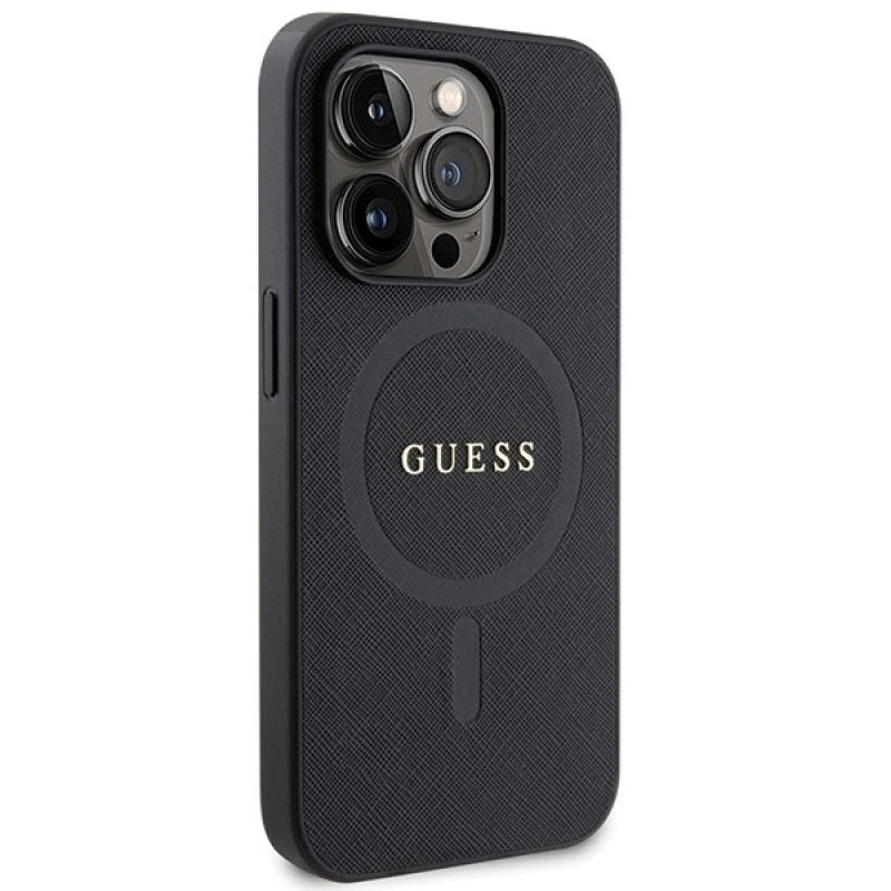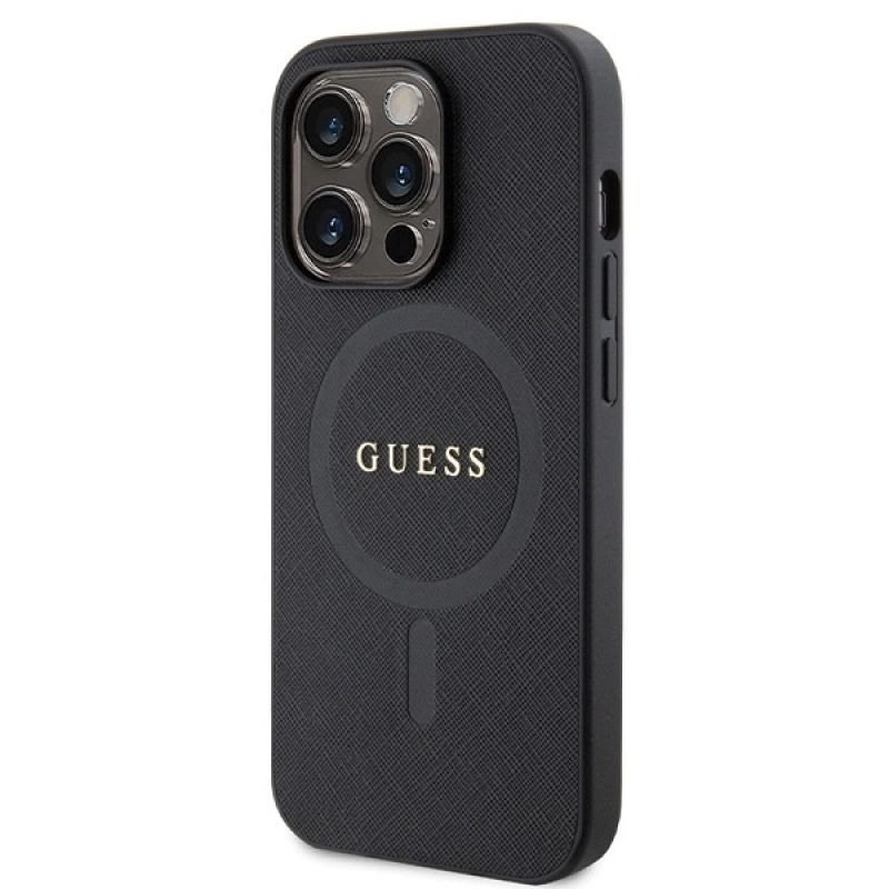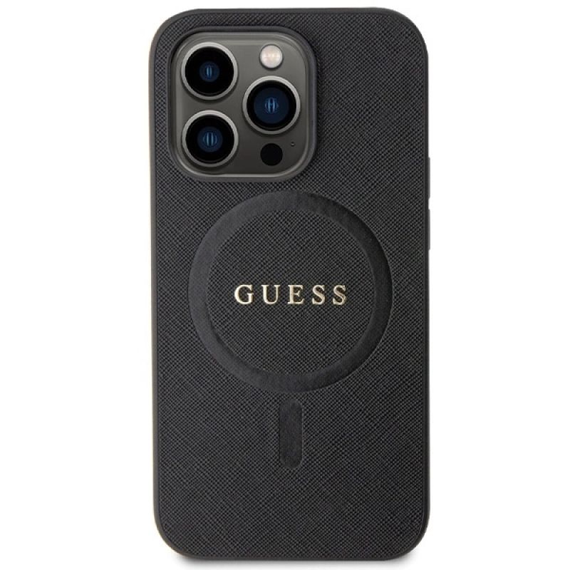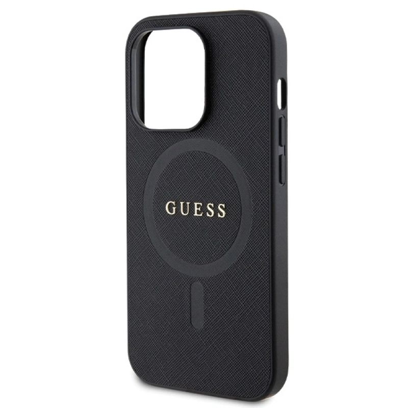 Guess GUHMP14LPSAHMCK Hülle für iPhone 14 Pro – schwarzes Saffiano MagSafe