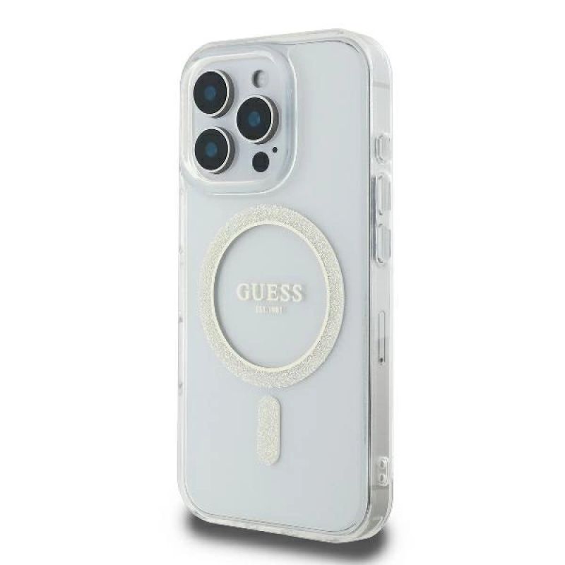 Guess GUHMP16LHFGERET iPhone 16 Pro 6,3" transparentes Hardcase IML Glitter Circle MagSafe