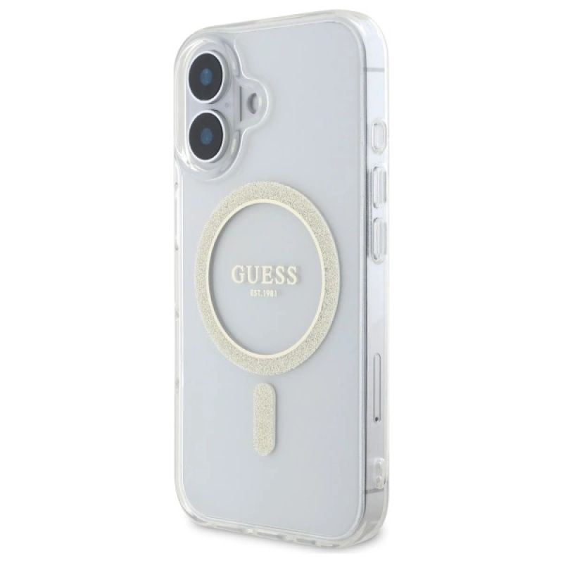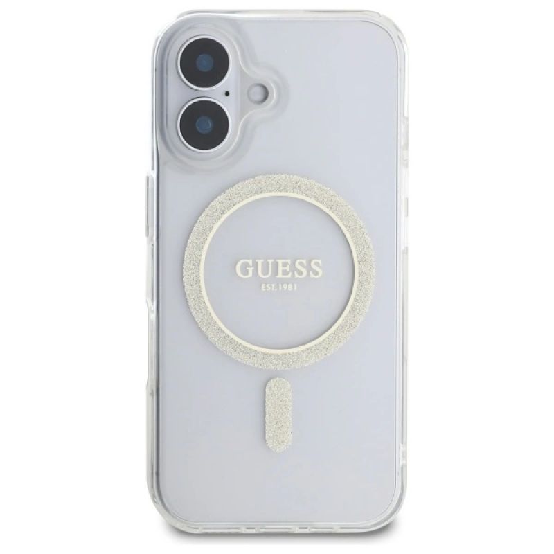 Guess GUHMP16MHFGERET iPhone 16 Plus 6,7" transparentes Hardcase IML Glitter Circle MagSafe