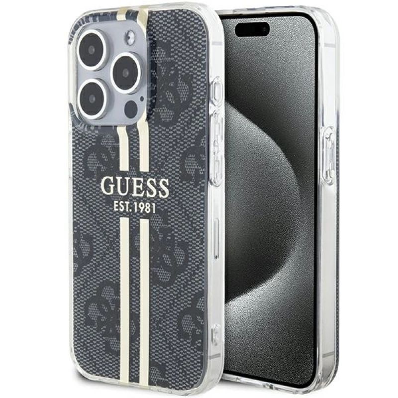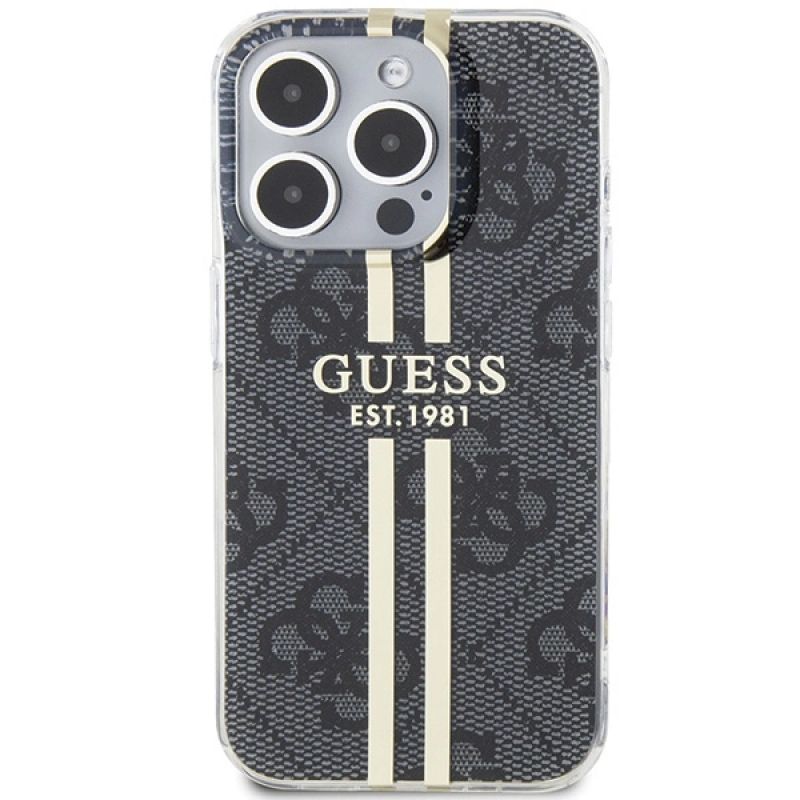 Guess IML 4G Gold Stripe Hülle für iPhone 15 Pro – Schwarz