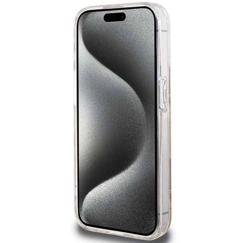 Guess IML GCube MagSafe Hülle für iPhone 15 Pro – braun