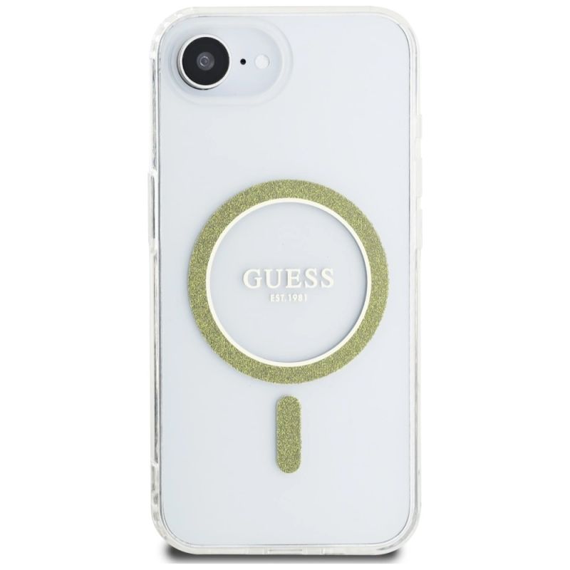 Guess IML Glitter Circle MagSafe iPhone 16e Hülle - Transparent