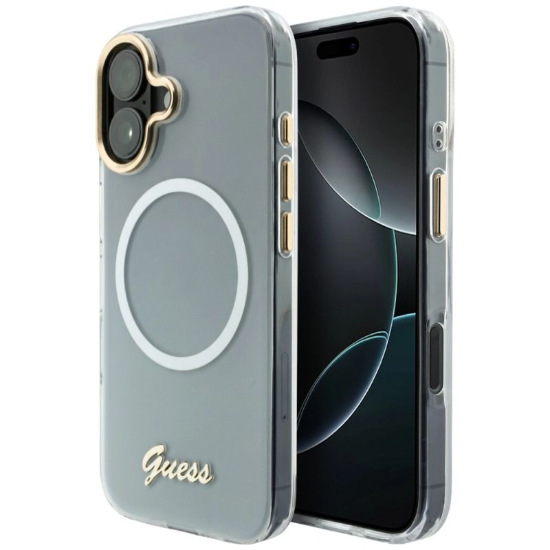Guess IML Gradient Script Metal MagSafe Hülle für iPhone 17 - Weiß