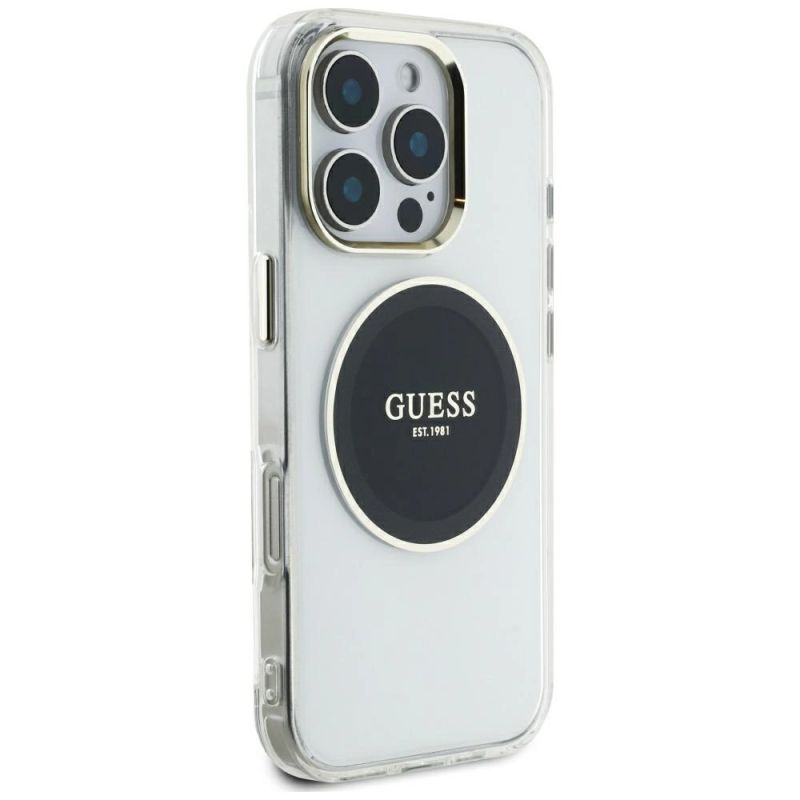 Guess IML Metal Colored Circle Classic Logo MagSafe Case für iPhone 16 Pro Max - Schwarz