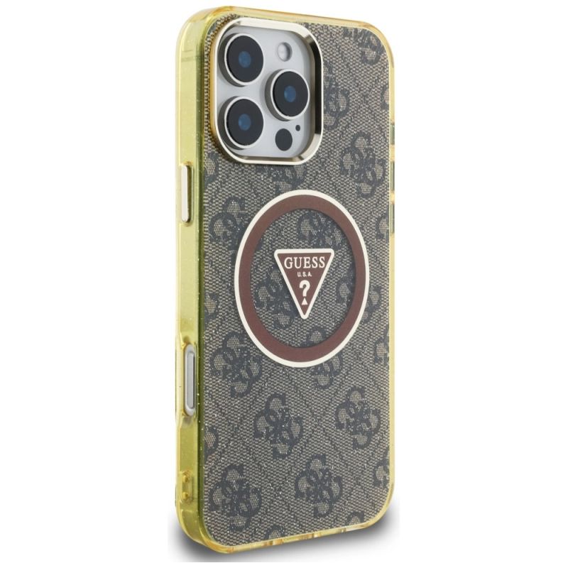Guess IML Metal Glitter 4G Circle Triangle MagSafe Case für iPhone 16 Pro Max - Braun