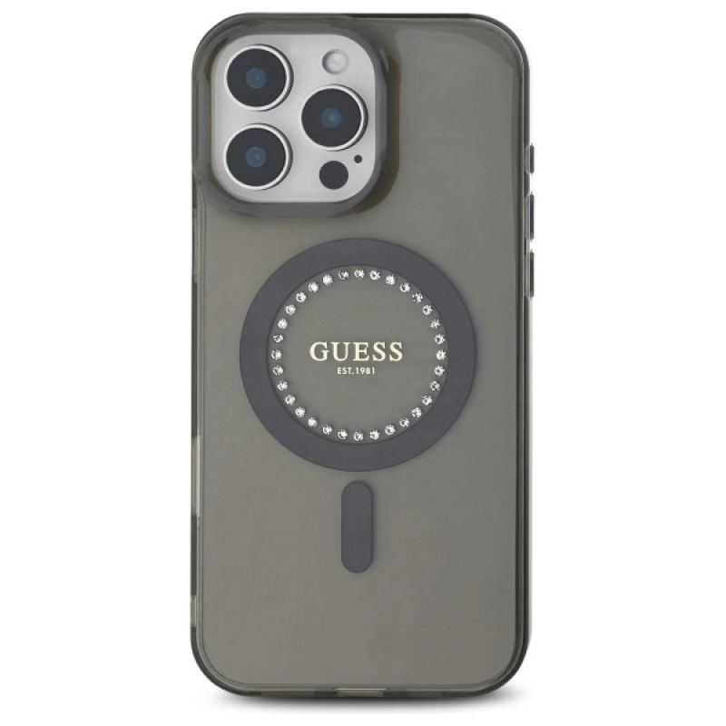 Guess IML Rhinestones MagSafe Hülle für iPhone 16 Pro – Schwarz