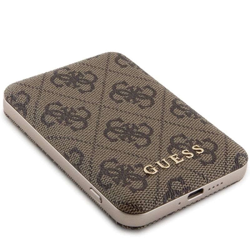 Guess Induction Powerbank 15W GUPB5FP4EMGW 5000mAh braun/braun 4G Leder Metall Logo MagSafe