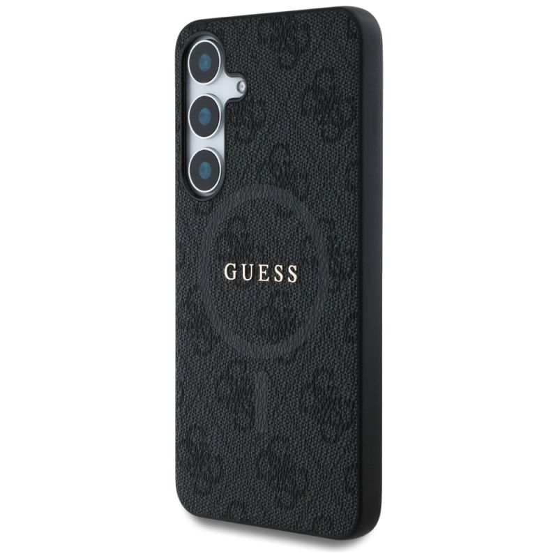 Guess Leder 4G Coloured Ring Classic Logo MagSafe Samsung Galaxy S25 Hülle schwarz