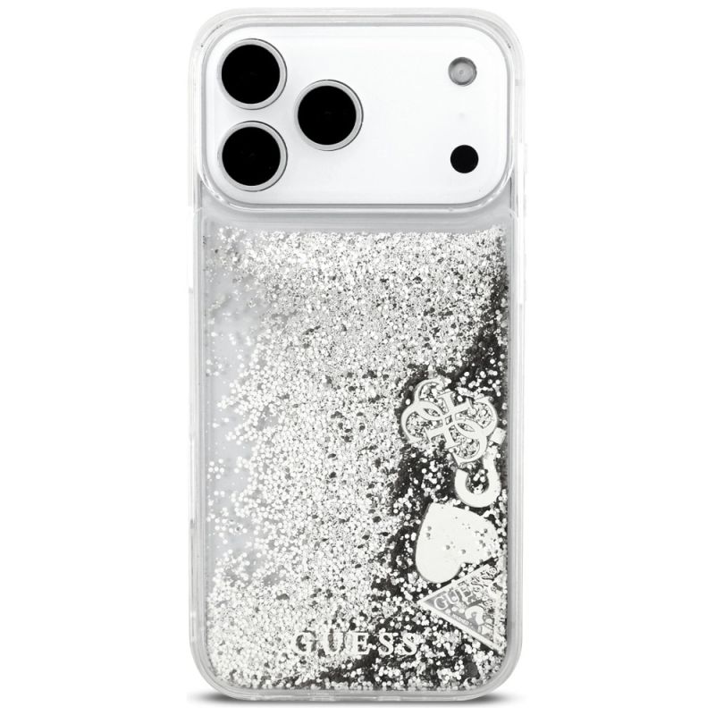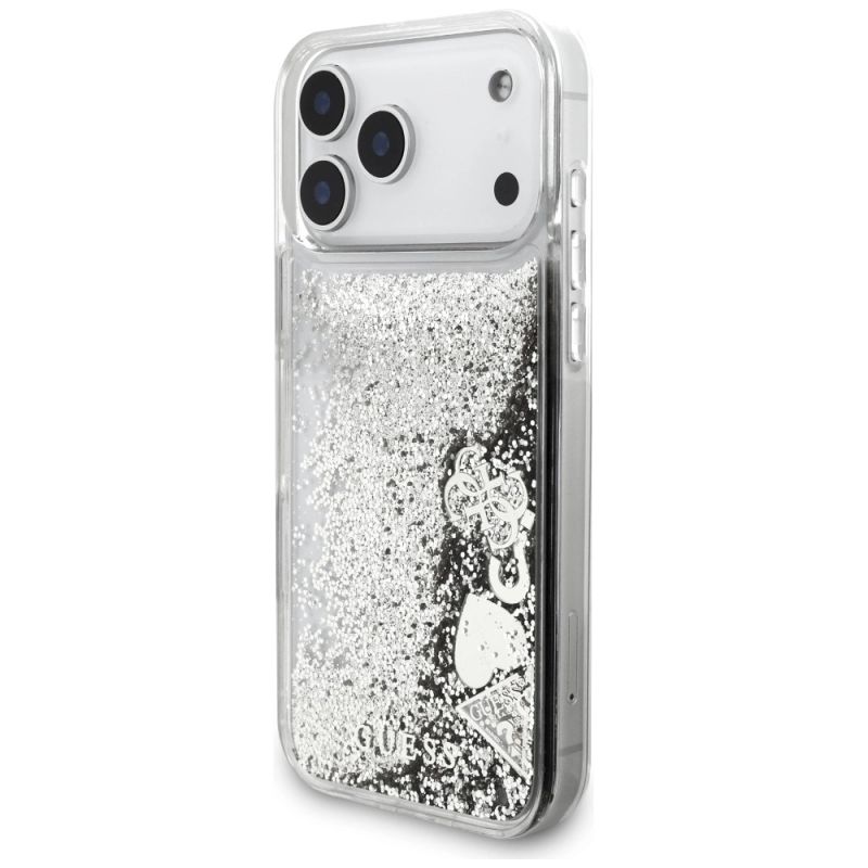 Guess Liq Hülle Glitter Charms für iPhone 17 Pro - Silber