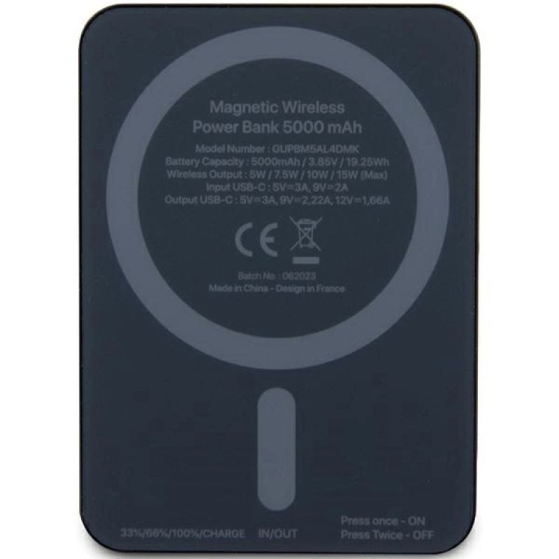 Sammlung 4G Strass-Metalllogo MagSafe Typ Drahtlose Powerbank Material Aluminium/Silikon Kapazität 5000 mAh / 3,85 V / 19,25 Wh Maße 83x60x14 mm Kabellose Ladeleistung 5 W / 7,5 W / 10 W / 15 W (maximal) USB-C-Eingang 5V⎓3A, 9V⎓2A USB-C-Ausgang 5V⎓3A, 9V⎓2,22A, 12V⎓1,66A Stromversorgung USB-C Farbe Schwarz Inbegriffen 1x Guess MagSafe Powerbank mit Strass-Logo aus Metall1x USB-C-Kabel 30cm