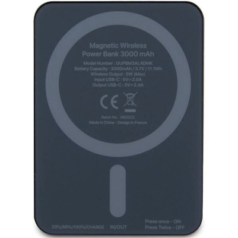 Guess MagSafe Metal Script Logo Induktions-Powerbank 5W 3000mAh - Schwarz