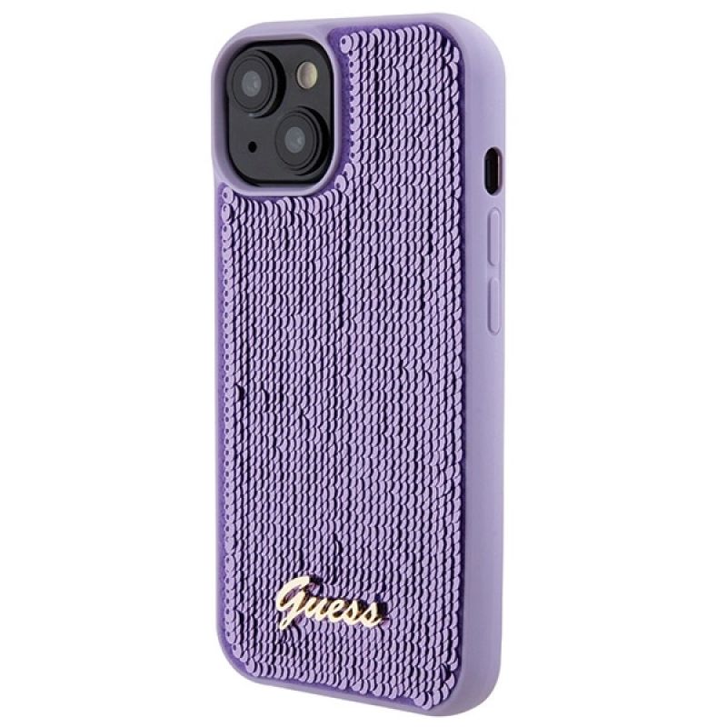 Guess Pailletten-Schriftzug-Metallgehäuse für iPhone 15 – Lila