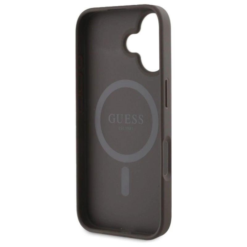 Guess Peony Script MagSafe Hülle für iPhone 16 – braun