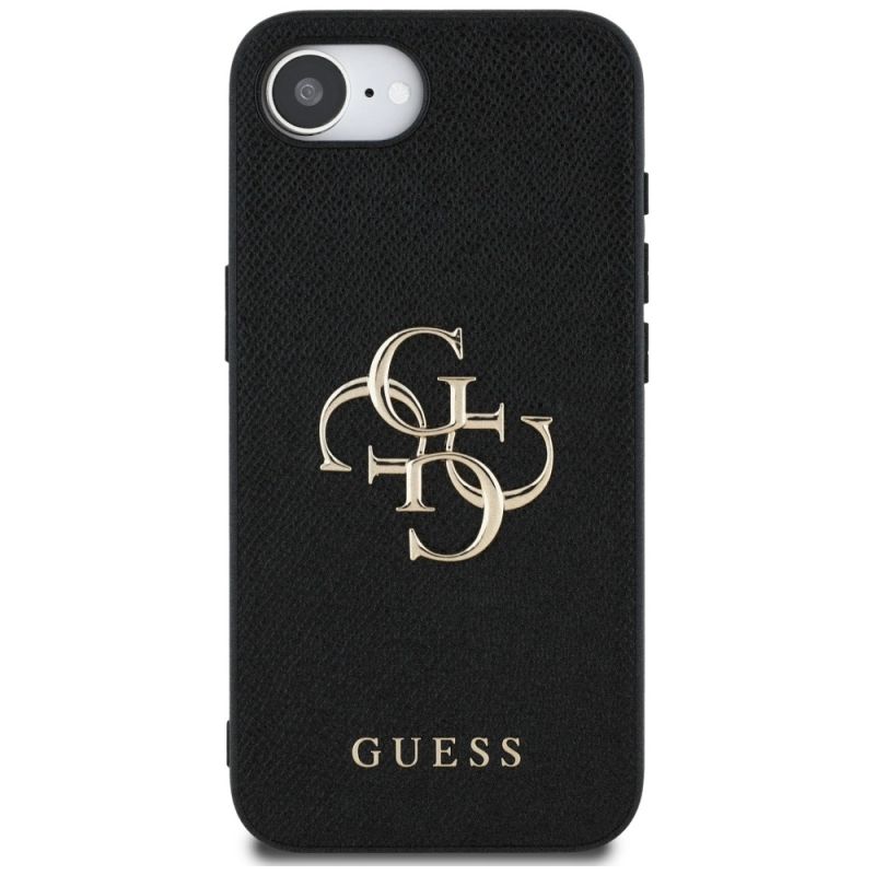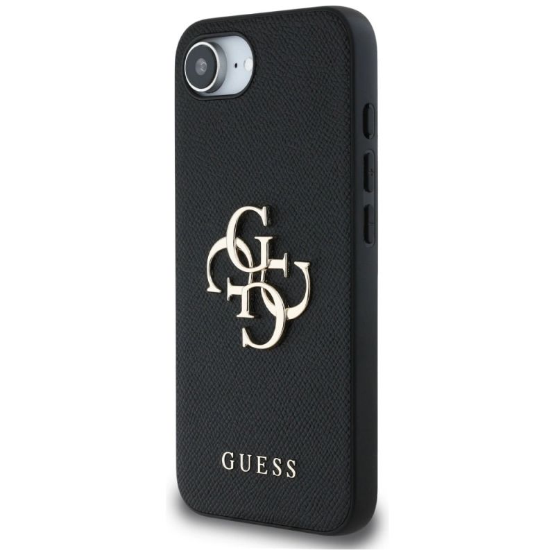 Guess PU Grained 4G Metal Logo iPhone 16e Hülle - Schwarz