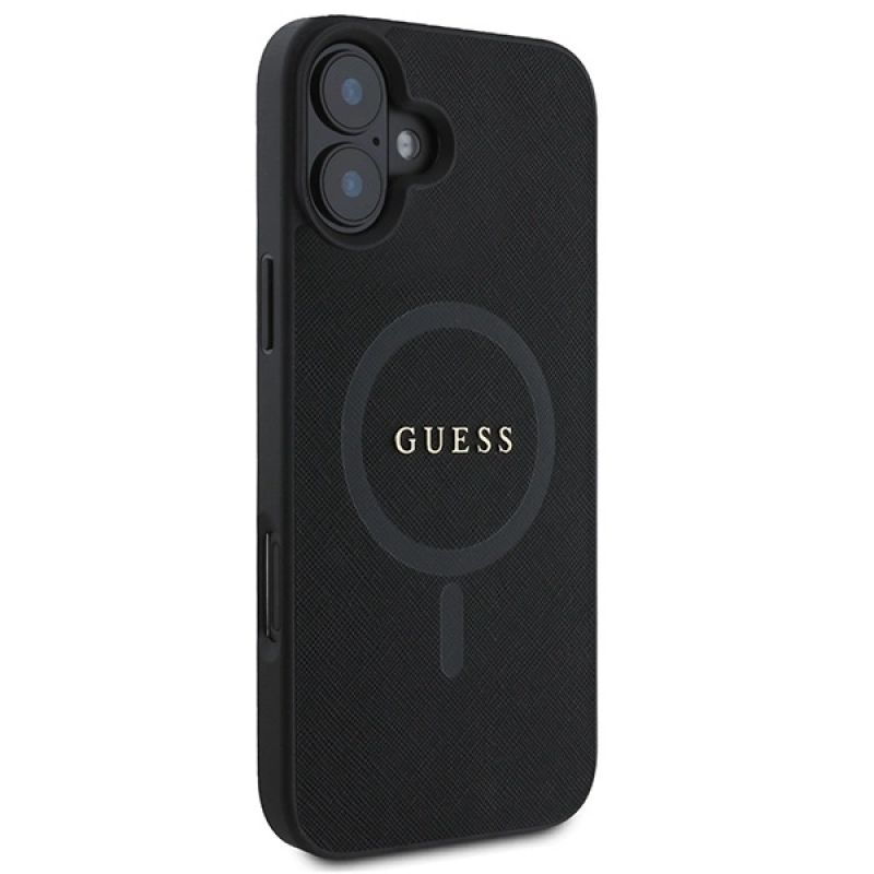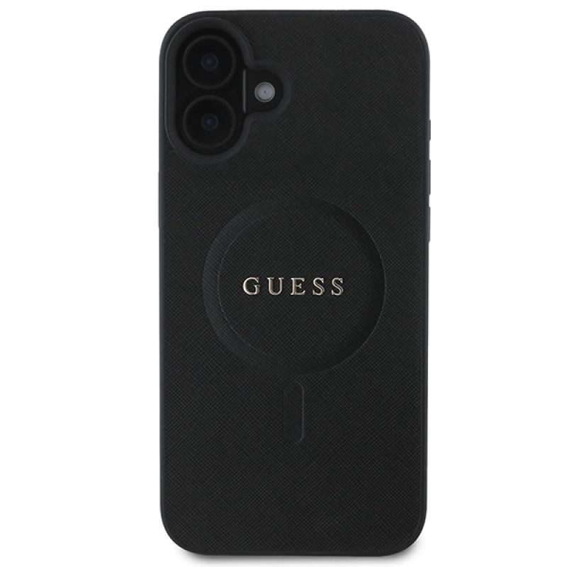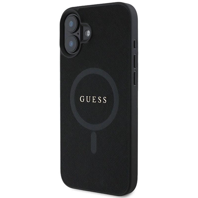 Guess Saffiano Classic Logo MagSafe-Hülle für iPhone 16 Plus – Schwarz