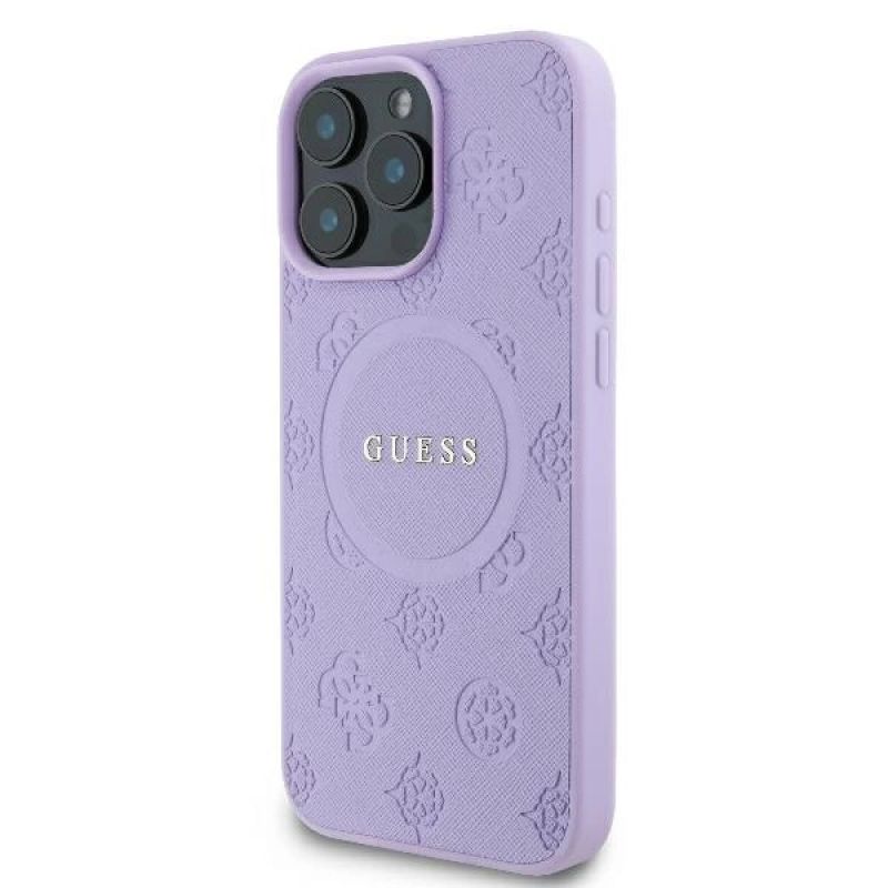 Guess Saffiano Peony Classic Logo MagSafe-Hülle für iPhone 16 Pro Max – Lila