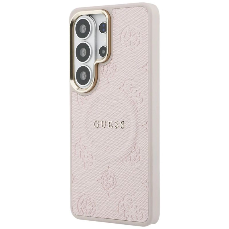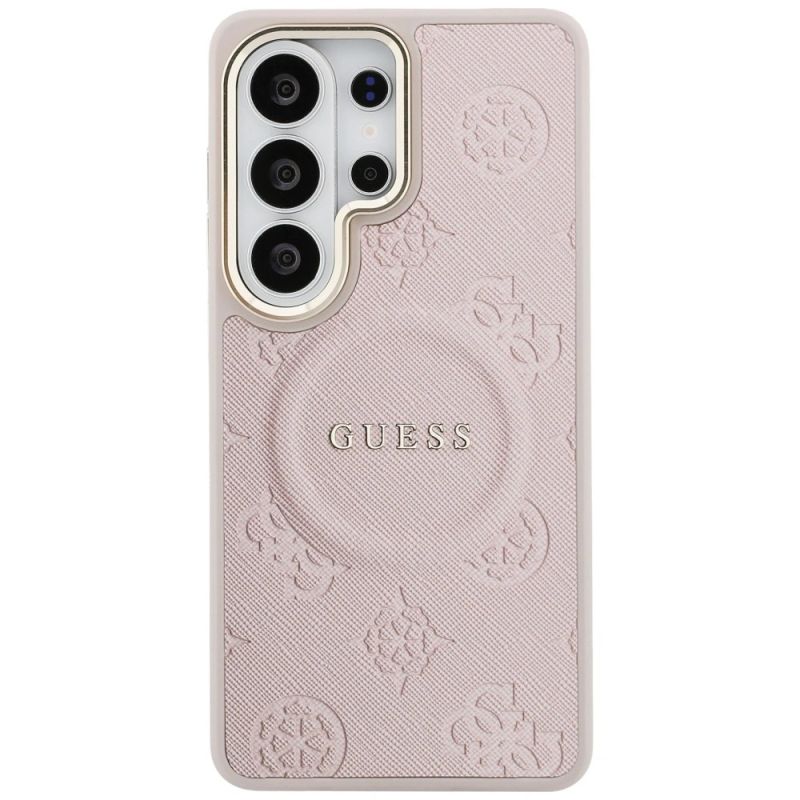 Guess Saffiano Peony Embossed Ring MagSafe Hülle für Samsung Galaxy S26 Ultra - Rosa