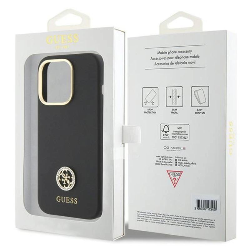 Guess Silicone Logo Strass 4G Case für iPhone 15 Pro Max - Schwarz