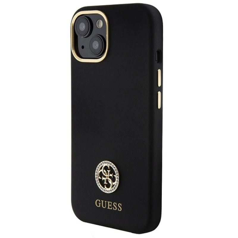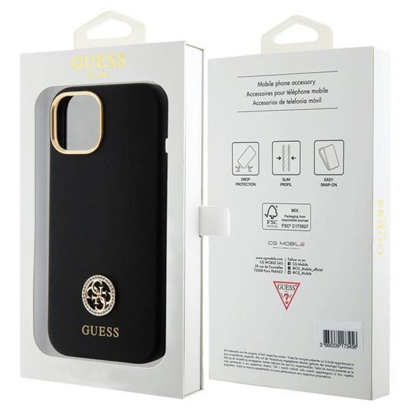 Guess Silicone Logo Strass 4G Case für iPhone 15 - Schwarz