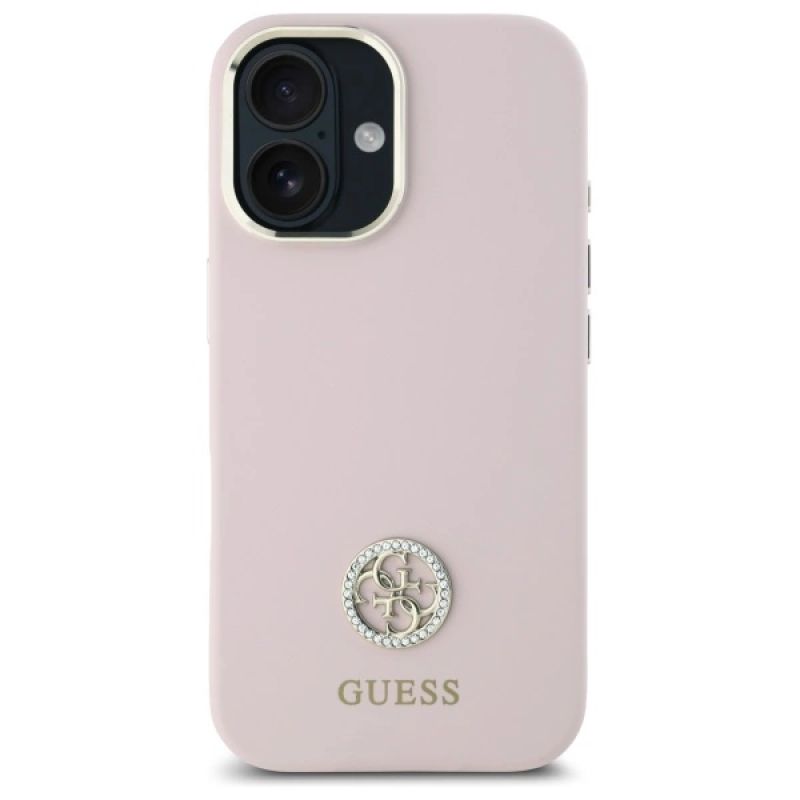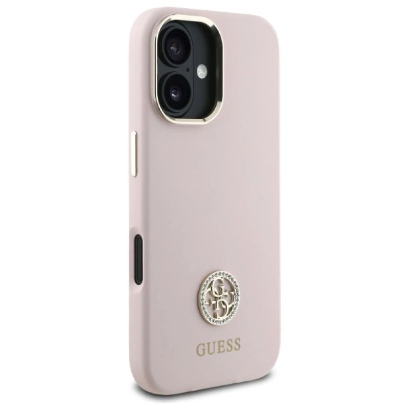Guess Silikon Logo Strass 4G Hülle für iPhone 16 - Hellrosa