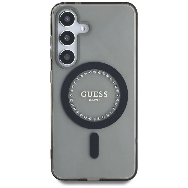 3. Guess Strass bedrucktes klassisches Logo MagSafe Samsung Galaxy S25 Hülle schwarz