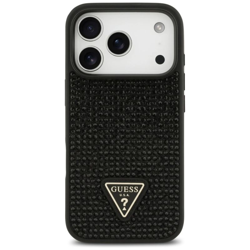 Guess Strass Dreieck Logo Hülle für iPhone 17 Pro - Schwarz
