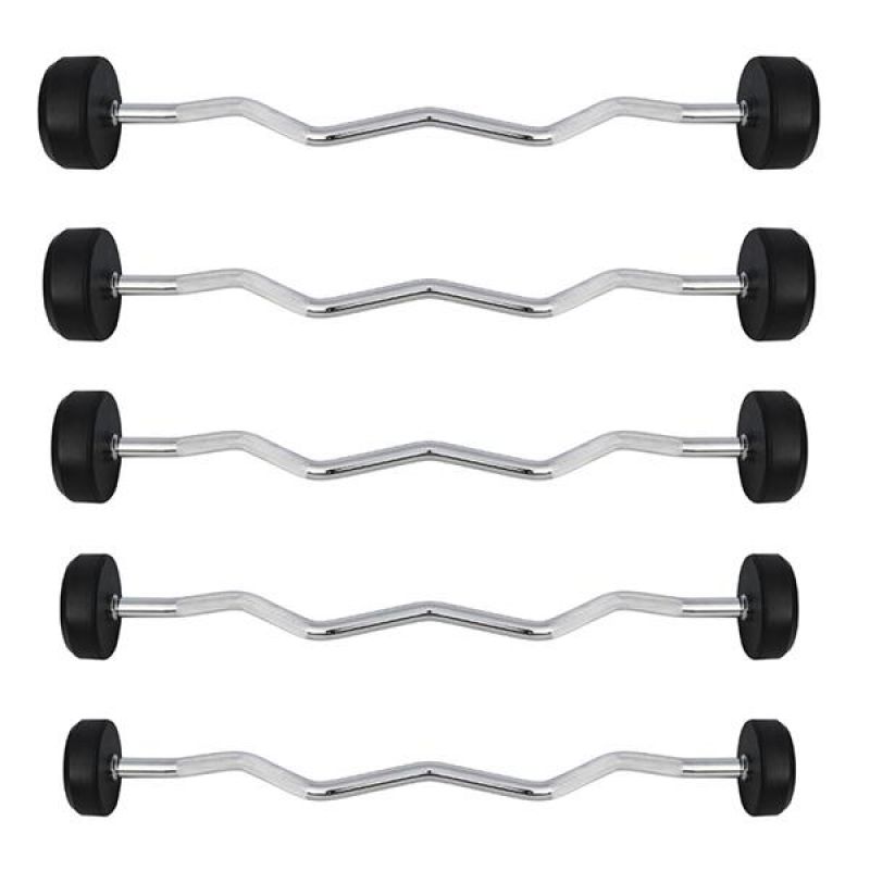 Die GSL Curl-Langhantel/Fixstange wird selbst anspruchsvollste Anwender zufriedenstellen. Die Stange besteht aus hochwertigem, gehärtetem, verchromtem Stahl. Sie verfügt über einen geriffelten Griffbereich für sicheren Halt. Die Gewichte sind mit hochwertigem Gummi überzogen.