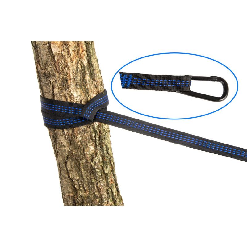 Das Set besteht aus robustem und langlebigem Material und hat eine maximale Tragkraft von 200 kg. Damit lässt sich beispielsweise eine Hängematte für zwei Personen befestigen. Die Gurte sind mit Befestigungsschlaufen ausgestattet, was das Aufhängen der Hängematte deutlich erleichtert. Sie können dieses Produkt im Garten, auf dem Grundstück, beim Camping oder sogar im Wald verwenden. Da kleine Teile schnell verloren gehen, empfiehlt es sich, sich mit unserem Set aus Ersatzgurten mit Karabinerhaken auszustatten. Die mitgelieferte Tasche bewahrt alle Teile sicher bis zur nächsten Saison auf.