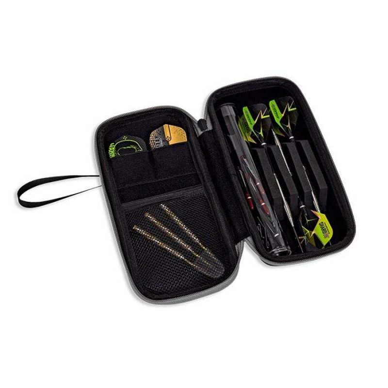 - Das äußerst praktische und ergonomisch kompakte Etui bietet Platz für 3 komplett montierte Darts und zusätzlichen Stauraum.