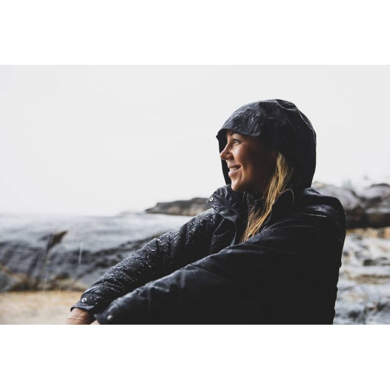 - Eine gut sitzende und vielseitige Regenjacke für Damen, die sowohl an warmen als auch an kalten Tagen vor den Elementen schützt.