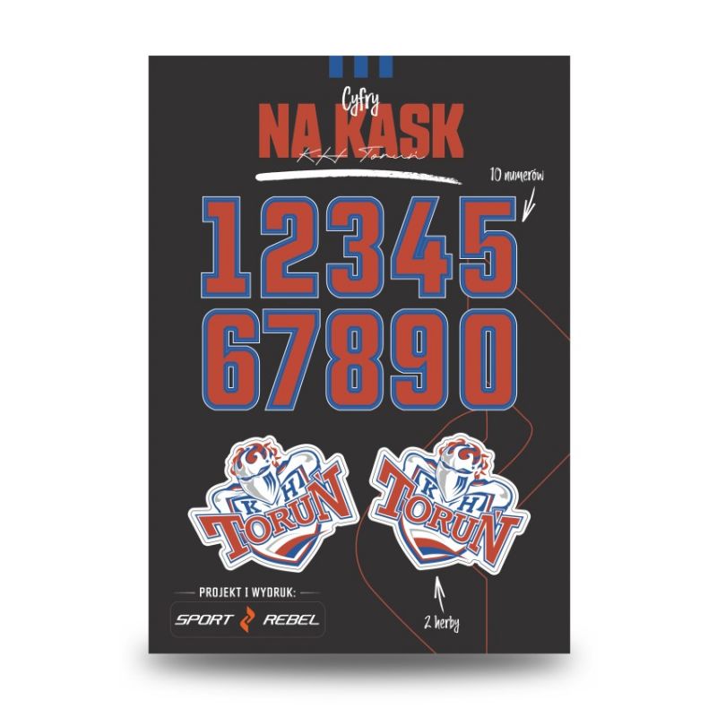 KHT Toruń Helmnummern. KHT Toruń Helmnummern sind ein Set hochwertiger Aufkleber für Hockeyspieler und Fans, die ihre Ausrüstung in den Farben ihres Lieblingsvereins personalisieren möchten. Hauptmerkmale: Offizielles Design: Das Set enthält die Nummern 0-9 in den Vereinsfarben mit markanter Kontur. Hochwertiger Druck: Die Aufkleber sind feuchtigkeits- und abriebfest und somit ideal für Spiel und Training. Zusätzliche Wappen: Das Set enthält zwei Aufkleber mit dem offiziellen KHT Toruń-Vereinswappen. KHT Toruń Helmnummern sind die perfekte Möglichkeit, Ihre Vereinszugehörigkeit auf und neben dem Eis zu zeigen!