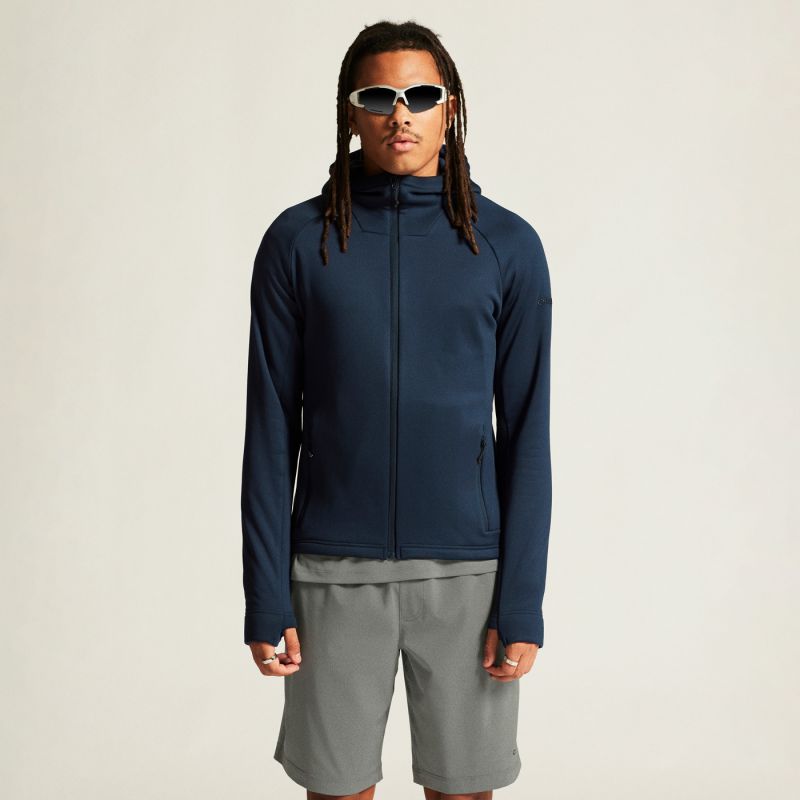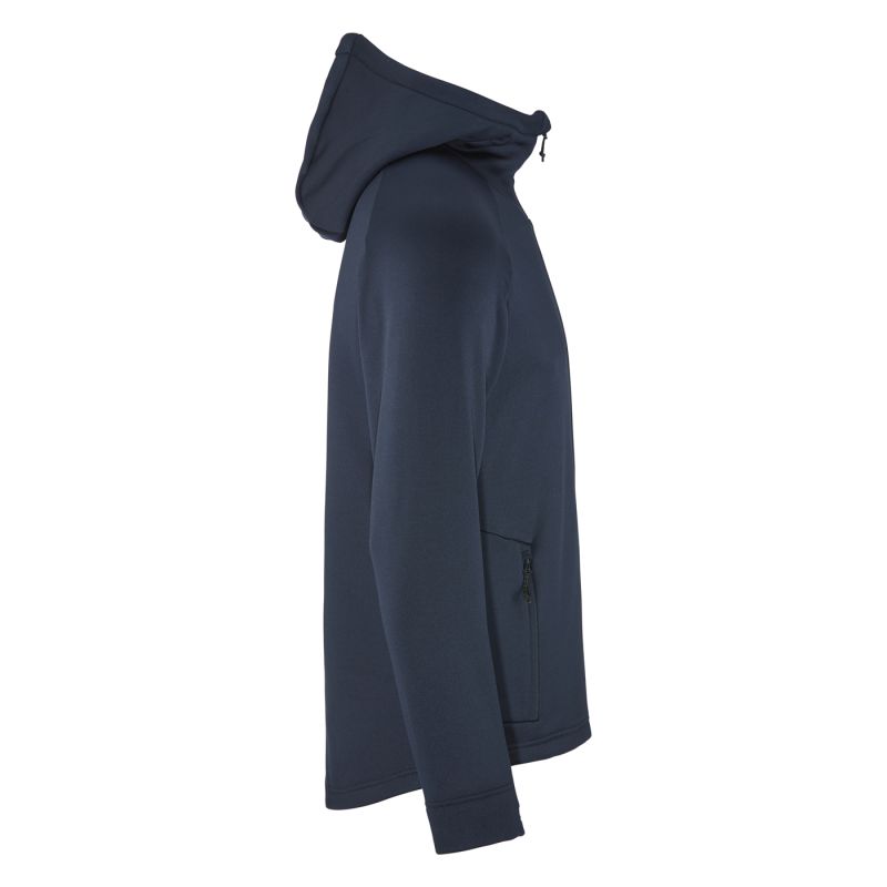 Diese moderne Kapuzenjacke aus Stretch-Fleece bietet hervorragenden Wärmerückhalt und hohe Atmungsaktivität. Das dehnbare Material ermöglicht volle Bewegungsfreiheit und sorgt für eine perfekte Passform beim Bücken, Drehen oder Strecken. Sie eignet sich hervorragend für eine Vielzahl von Aktivitäten – vom Wandern und Skifahren bis hin zum Alltag bei kühlerem Wetter. Sie kann sowohl als Außen- als auch als Mittelschicht getragen werden. Material: 94 % recyceltes Polyester, 6 % Elasthan. Normale Passform. Superweiches und dehnbares Fleece mit gebürsteter Innenseite (250 g/m²). Raglanärmel für Bewegungsfreiheit. Eine taillierte Kapuze sorgt für Wärme und Komfort bei kaltem Wetter. Zwei seitliche Reißverschlusstaschen mit einer Netztasche. Daumenlöcher an den Ärmelenden. Gesticktes Logo auf dem linken Ärmel.