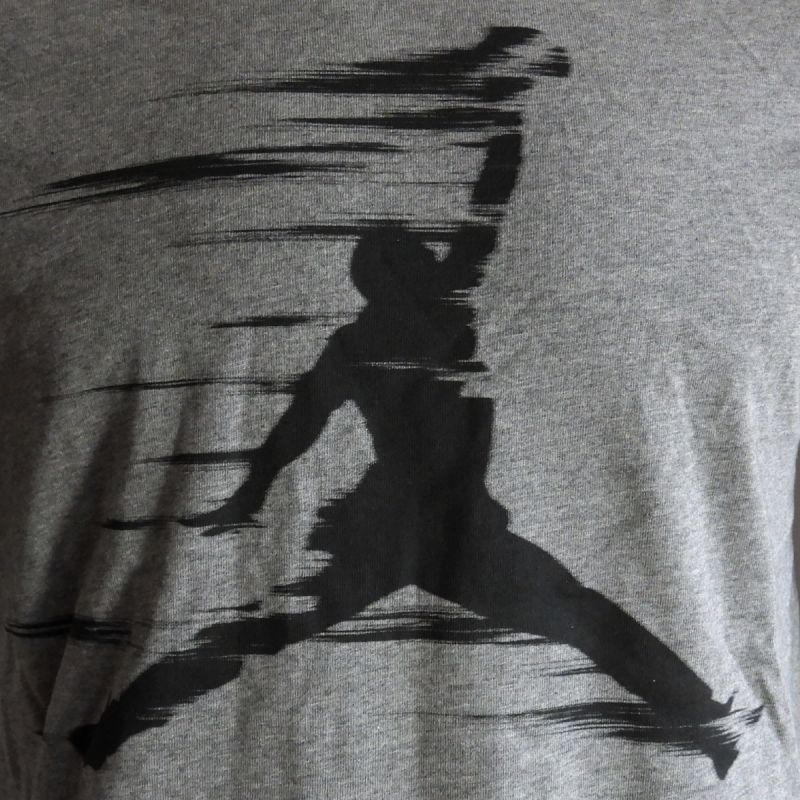 Auf der Vorderseite befindet sich ein markanter Aufdruck mit dem Jumpman-Logo, der den sportlichen Charakter des Produkts unterstreicht und auf die Legende von Michael Jordan verweist.