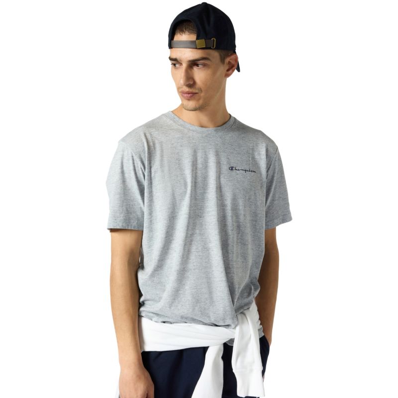 Champion Kurzarm-T-Shirt Grau 221798 EM021 Dieses Herren-T-Shirt von Champion ist perfekt für jeden Tag. Normale Passform. Kleines Champion-Logo auf Brust und linkem Ärmel. Gerippter Rundhalsausschnitt. Weiches Material. Material: 100 % Baumwolle.