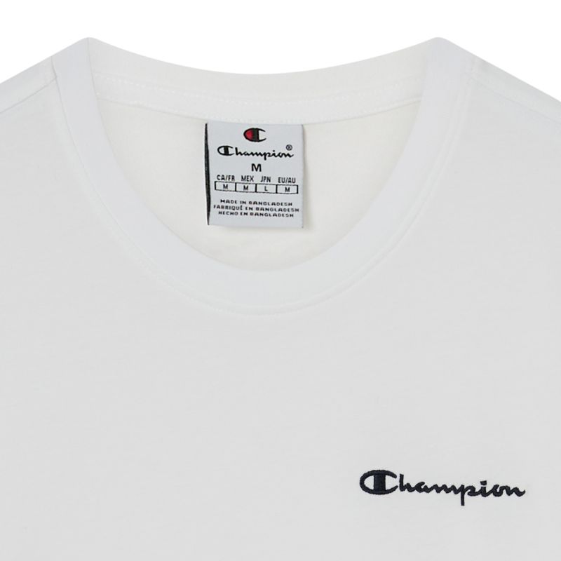 Champion SS Tee Herren Weiß 221798 WW001 Dieses Champion Herren T-Shirt ist perfekt für den Alltag. Standard-Passform. Kleines Champion-Logo auf der Brust und dem linken Ärmel. Gerippter Rundhalsausschnitt. Weicher Stoff. Material: 100% Baumwolle