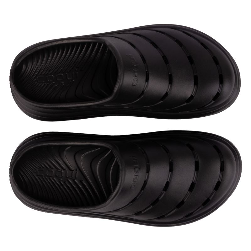 CoquiAir-Material (die höchste Klasse der EVA-Materialien) Antibakterielle Oberfläche Rutschfeste und nicht abfärbende Sohle Leicht erhöhter Absatz Belüftungslöcher am Spann Möglichkeit der Personalisierung mit Amuletz-Pins