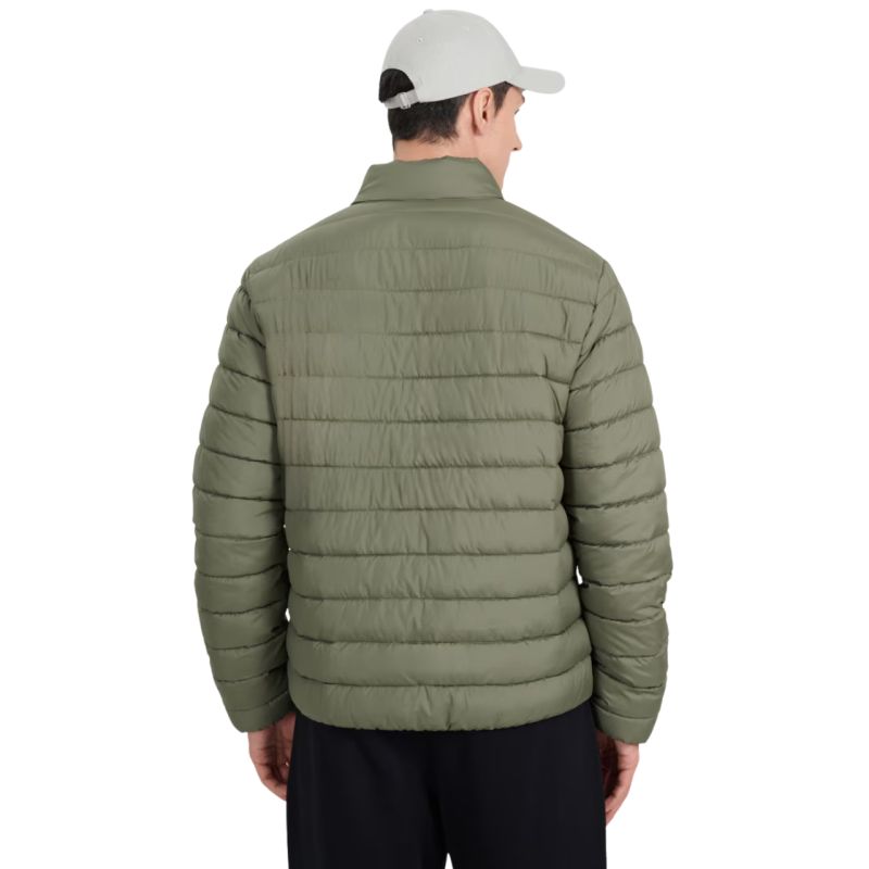 Die 4F M597 Herren Daunenjacke Khaki 4FWAW25TDJAM597 43S ist eine leichte Herrenjacke, die sich perfekt für wärmere oder bewölkte Tage in der Übergangszeit eignet. Ihr Standardschnitt zeichnet sich durch horizontale Steppungen und einen niedrigen Stehkragen aus. Die wasserabweisende Imprägnierung des Obermaterials lässt Feuchtigkeit auf der Stoff- oder Strickoberfläche abperlen und anschließend ungehindert abfließen. Synthetische Daunenfüllung ist langlebiger und pflegeleichter als natürliche Daunen. Selbst bei Feuchtigkeitseinwirkung behält sie länger ihre isolierenden Eigenschaften und trocknet deutlich schneller. Technische Daten: Hauptmaterial: 100 % Polyester Futter: 100 % Polyester Füllung aus 100 % recycelter synthetischer Daune, bietet ausreichende Isoliereigenschaften auch bei feuchten Bedingungen Normale Passform – bequeme Passform am Körper ohne Bewegungseinschränkung Standardlänge bis zur Hüfte – universeller Stil für den täglichen Gebrauch Klassische horizontale Steppung – gleichmäßige Verteilung der Füllung und ein stylischer Look Leichte Konstruktion – Tragekomfort ohne unnötiges Gewicht Hydrophobe Außenbeschichtung – begrenzt die Feuchtigkeitsaufnahme Ripstop-Gewebe – erhöhte Reißfestigkeit und Haltbarkeit Füllung aus recycelter Synthetik – wirksame Isolierung auch bei feuchten Bedingungen Stehkragen – zusätzlicher Schutz des Halses vor Kälte Elastische Bündchen und Saum – bessere Passform und Windschutz 2 seitliche Reißverschlusstaschen – sichere Aufbewahrung kleiner Gegenstände Innere Reißverschlusstasche – zusätzlicher Platz für Wertsachen Hauptreißverschluss mit winddichter Klappe – erhöhter Schutz vor Wärmeverlust