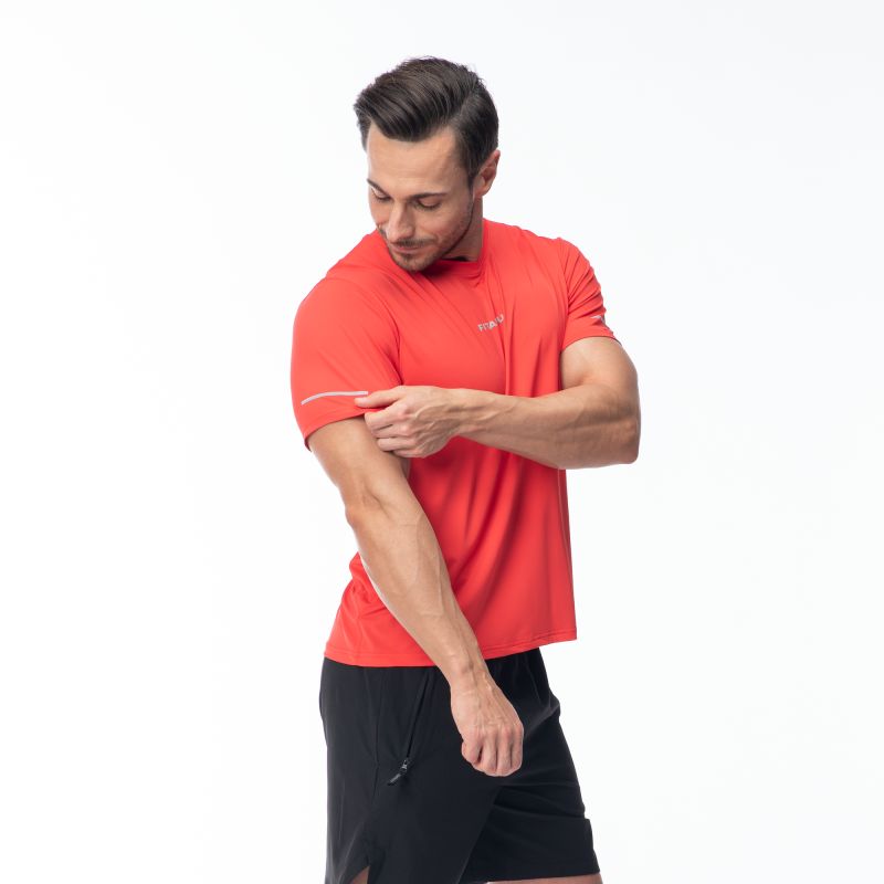 KURZARM-LAUFSHIRT GRÖSSE: S-XL MATERIALZUSAMMENSETZUNG: MATERIAL 1: 90% NYLON, 10% ELASTAN MATERIAL 2: 93% POLYESTER, 7% ELASTAN SPEZIFIKATIONEN: - ATMUNGSAKTIV - SCHNELLTROCKNEND - REFLEKTIERENDE ELEMENTE - ELASTISCHE 4-WEGE-STRETCH-FASERN