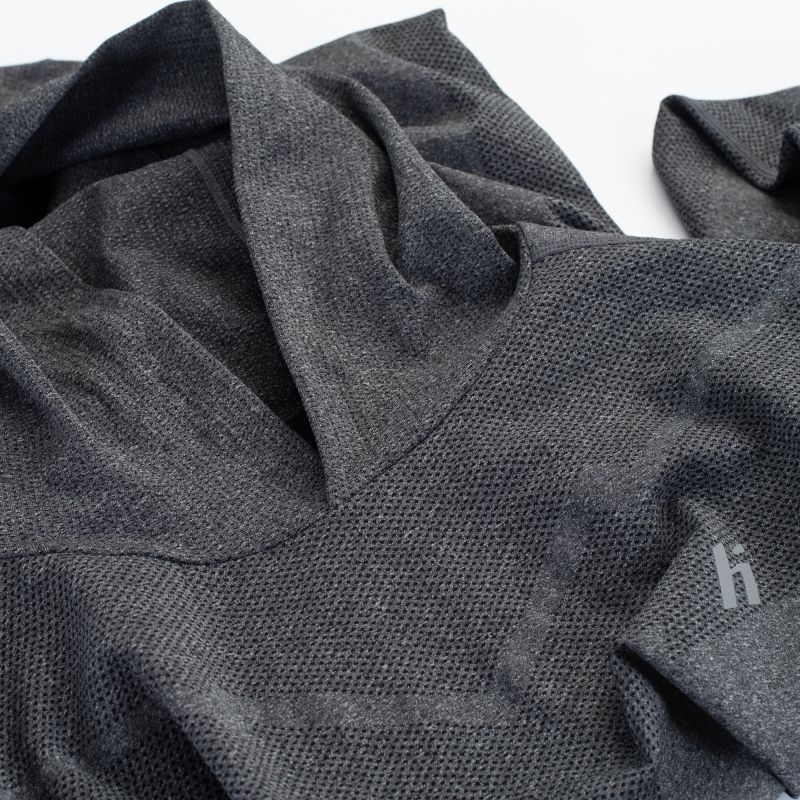 Trainingsshirt, Größen: S-XL, Materialzusammensetzung: 69 % Nylon, 23 % Polyester, 8 % Elastan, Eigenschaften: Atmungsaktiv, Schnelltrocknend, Nahtlos, Reflektierende Elemente, Elastische 4-Wege-Stretchfasern