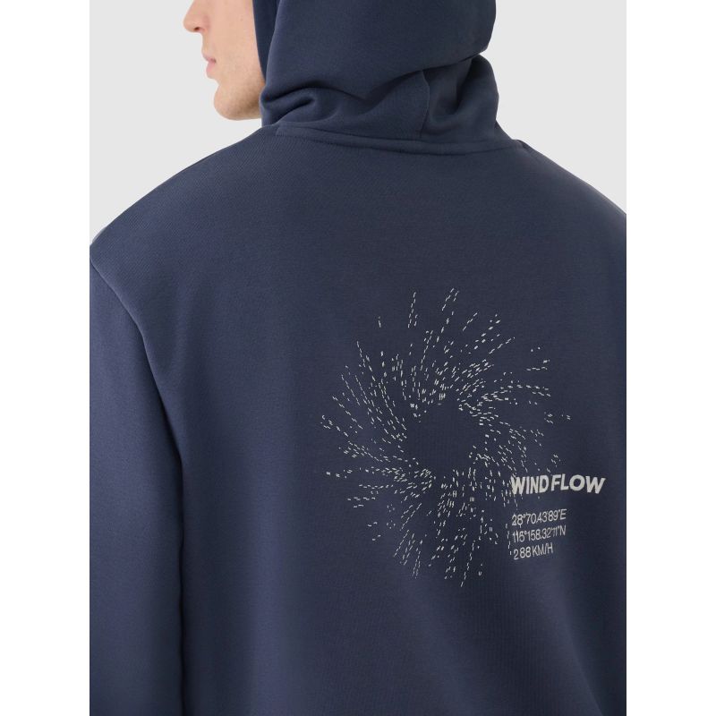 Dieses Modell zeichnet sich durch eine reguläre Passform aus, die sich bequem an den Körper anpasst, ohne die Bewegungsfreiheit einzuschränken. Die Innenseite besteht aus French Terry und ist somit atmungsaktiv und bequem für den Alltag. Die integrierte Kapuze , elastische Bündchen und eine praktische Kängurutasche erhöhen Funktionalität und Komfort. Auf der Rückseite ist ein „Wind Flow“-Print sichtbar, der dem Kleidungsstück einen sportlichen Charakter verleiht.