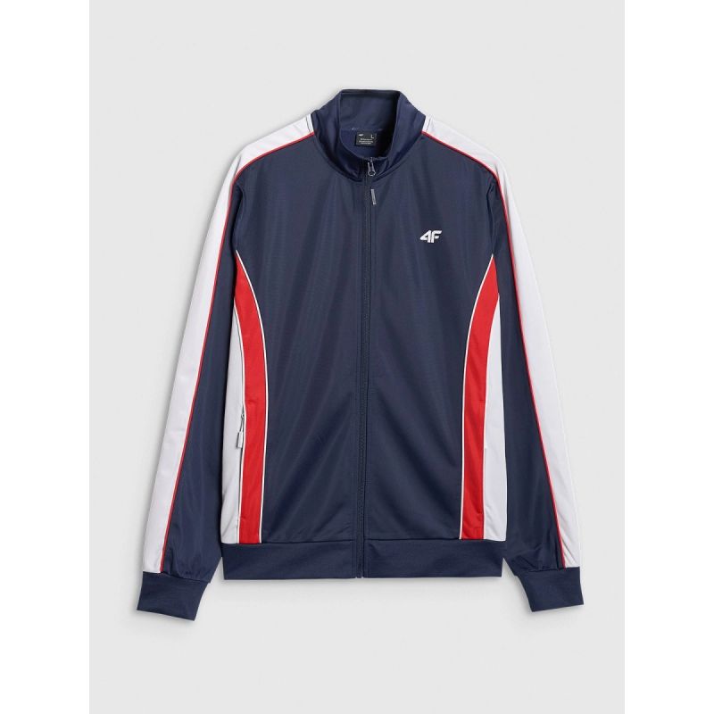 Dieses Herren-Sweatshirt von 4F vereint Komfort und einen unverwechselbaren Retro-Look. Die leichte Wattierung sorgt an kühleren Tagen für angenehme Wärme, während der Reißverschluss das An- und Ausziehen erleichtert und eine optimale Anpassung an das Wetter ermöglicht. Die reguläre Passform garantiert eine natürliche Passform ohne Einschränkung der Bewegungsfreiheit, und das glänzende Material verleiht dem Sweatshirt einen einzigartigen Vintage-Charme. Zwei Reißverschlusstaschen bieten sicheren Stauraum für Kleinigkeiten. Die perfekte Wahl für Männer, die Wert auf Komfort, Schlichtheit und einen modischen, sportlichen Stil im Stil der 80er und 90er Jahre legen.
