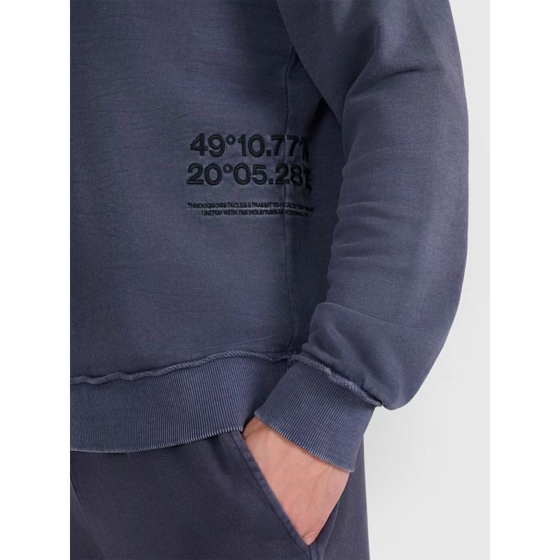 Der Rundhalsausschnitt ist mit einer leichten Rippenblende versehen. Auch die Ärmelbündchen und der Saum sind für eine bessere Passform gerippt. Der klassische Pullover-Style ohne Taschen besticht durch eine dezente Stickerei am Saum.