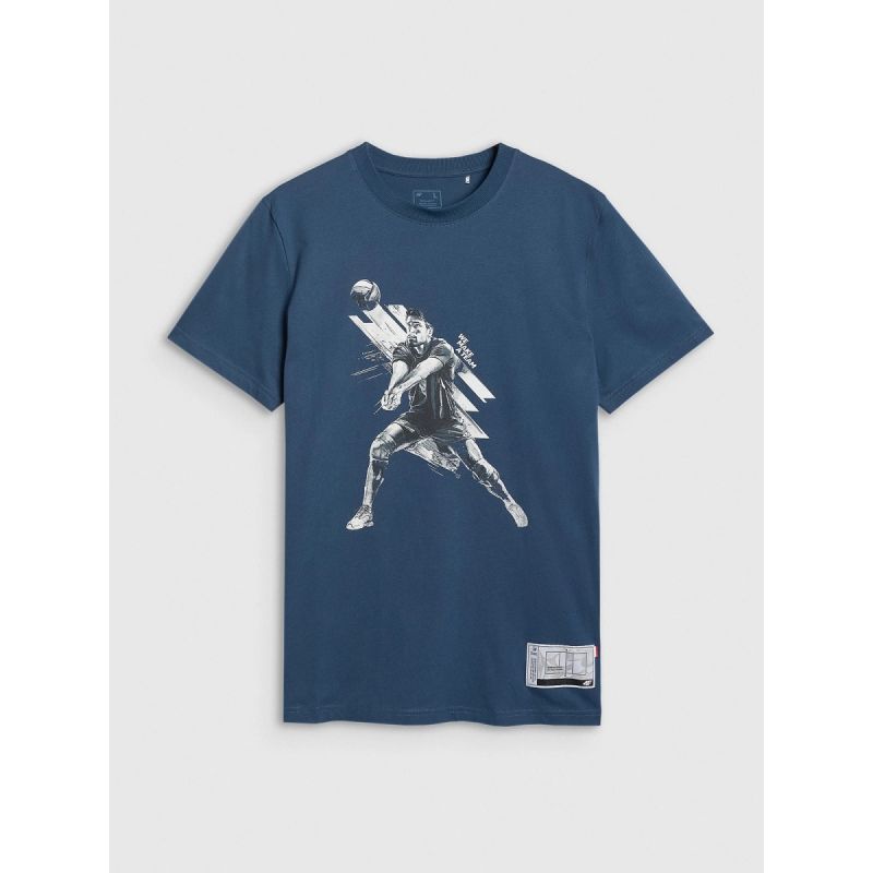 Dieses Herren-T-Shirt von 4F ist die perfekte Wahl für alle, die Wert auf Stil, Komfort und natürliche Materialien legen. Es besteht aus 100 % weicher Baumwolle und bietet so ganztägigen Tragekomfort. Die reguläre Passform sorgt für einen bequemen Fall und uneingeschränkte Bewegungsfreiheit. Der markante Print verleiht dem Shirt einen modernen Touch, und die vielseitige marineblaue Farbe macht es zu einem idealen Begleiter für verschiedenste Outfits – von sportlich bis lässig. Es eignet sich perfekt für den Alltag und leichte sportliche Aktivitäten. Entdecken Sie weitere Styles in der Kategorie Herren-T-Shirts und das gesamte Sortiment der Marke 4F bei SportoweStyle.
