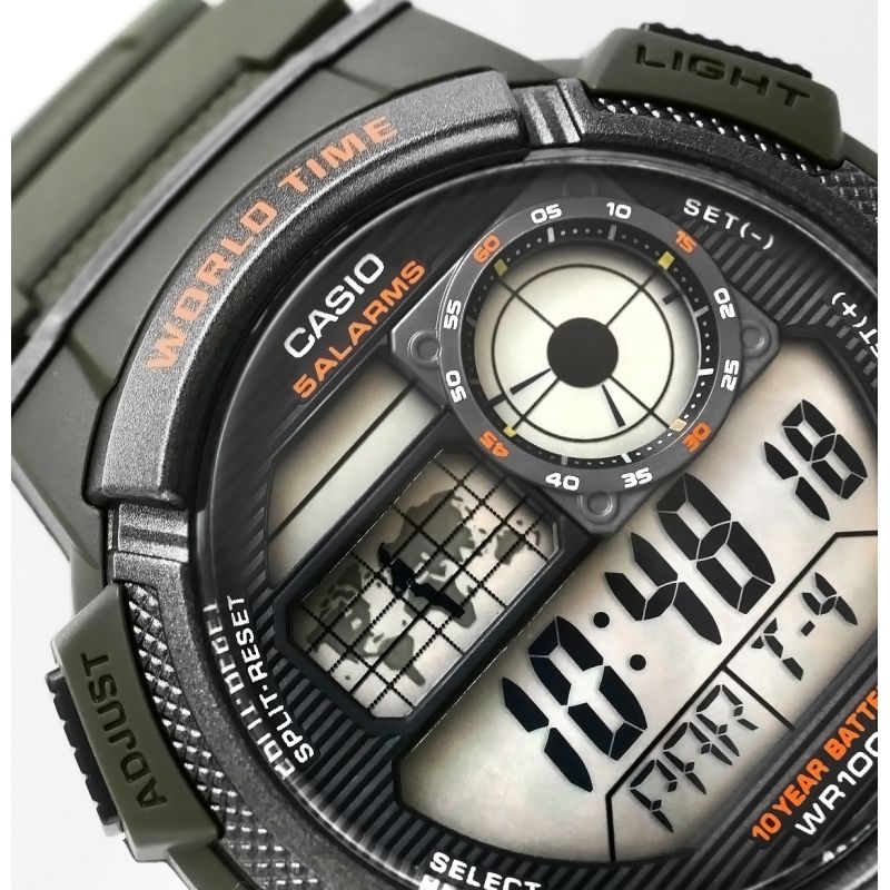 Dieses CASIO-Modell bietet Multi-Time, Weltzeit, Stoppuhr, 5-fachen Alarm und Countdown-Timer – und das alles mit einer einzigen Batterie für 10 Jahre. Die Casio AE-1000W ist eine Uhr, die mit Ihnen Schritt hält: Ihr vom Cockpit inspiriertes Zifferblatt verleiht ihr einen robusten, technischen Charakter, der maskulinen Stil und einen dynamischen Lebensstil unterstreicht. Dank Weltkarte und Weltzeitfunktion haben Sie die Zeit in verschiedenen Zeitzonen immer im Blick und können sie so ideal für Reisende und international tätige Berufstätige nutzen. Das LC-Analogdisplay zeigt Ihnen stets die Zeit Ihrer Heimatstadt an, und die Wasserdichtigkeit bis 100 Meter ermöglicht den komfortablen Einsatz auch unter anspruchsvollen Bedingungen. Diese Uhr ist für Männer, die mehr erwarten – Präzision, Langlebigkeit und Stil.
