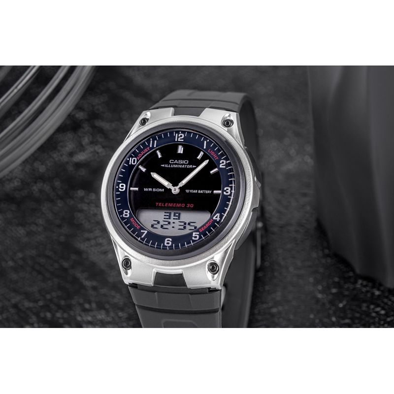 Die Casio AW-80-1AVDF bietet Funktionen wie ein Dual-Display (analog und digital), Telememo 30 zum Speichern von Kontakten, Alarme, Stoppuhr, Timer und die Möglichkeit, die Zeit in 30 Zeitzonen anzuzeigen. Sie ist außerdem wasserdicht bis 50 Meter, hat eine Batterielaufzeit von 10 Jahren und eine Illuminator-Hintergrundbeleuchtung für optimale Lesbarkeit im Dunkeln.