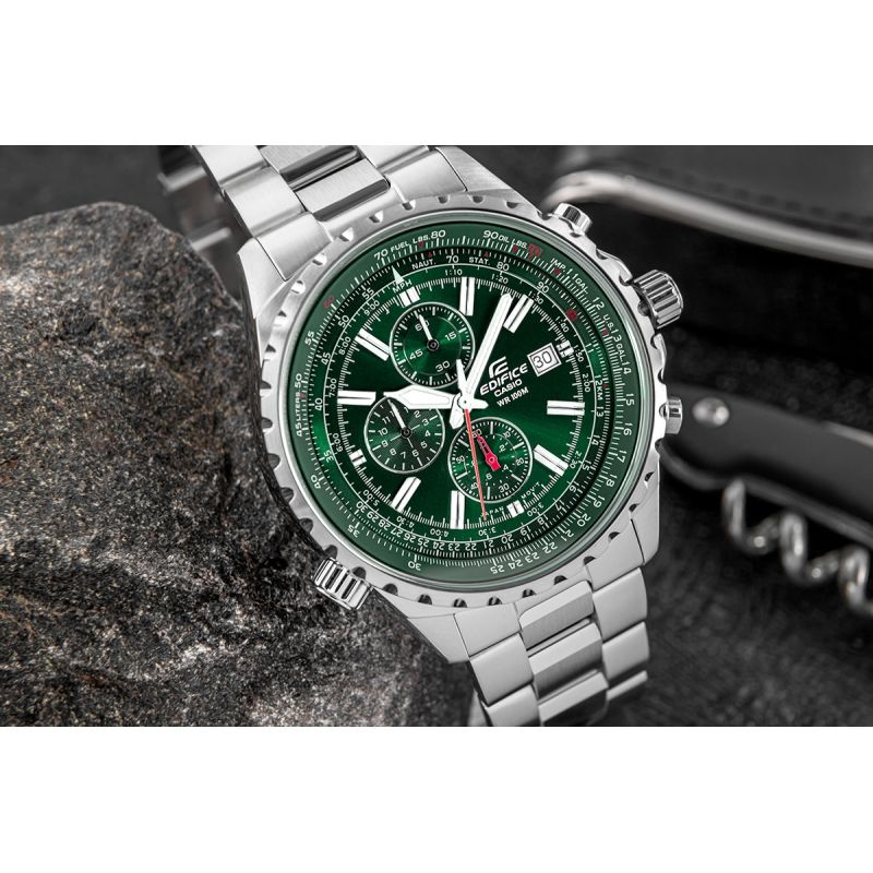 Die CASIO EDIFICE beweist ihre Vielseitigkeit. Ob Sie sich für das klassische Modell mit Stahlarmband, die sportliche Variante mit elastischem Armband oder die elegante Version mit Echtlederarmband entscheiden – jede EDIFICE an Ihrem Handgelenk vereint sportlichen Stil mit einer raffinierten Optik.