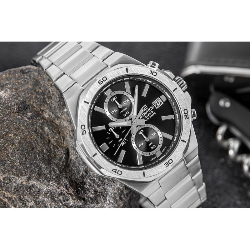 Darüber hinaus bestehen Edifice-Uhren aus robusten Materialien wie Edelstahl und Mineralglas, was Langlebigkeit und Widerstandsfähigkeit gegen Beschädigungen gewährleistet.